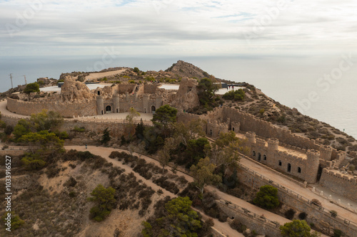 history, battery, mountain, murcia, travel, architecture, sea, military, castle, fort, abandoned, old, aerial view, travel destination, vacation, mediaeval, construction material, famous place, holiday maker, mediterranean sea, europa, building, built, tour tourism, heritage, recreational vehicles, van, attraction, fortress, fortification