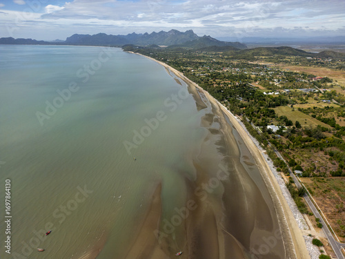 up high, aerial, beach, boat, clear sky, coast, coastal, daytime, drone, exotic, horizon, mountain chain, natural, ocean, outdoors, road, sand, scenic, seascape, shoreline, siam, tour tourism, travel, tree, tropical, vegetation, view, water