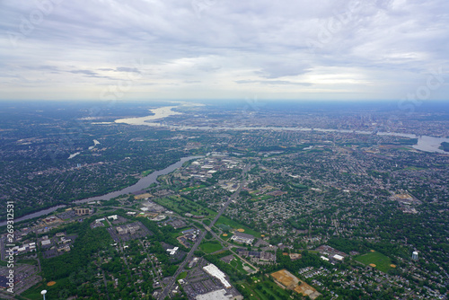Aerial view of the skyline of the city of Philadelphia and the surrounding areas in Pennsylvania, United States