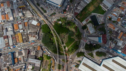 Aerial view of the São Mateus monorail station on the east side of São Paulo Brazil