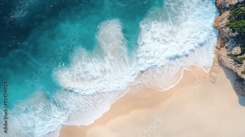 ocean, beach, wave, aerial view, turquoise, sand, nature, seascape, coastline, travel, summer, vacation, paradise, tropical, drone, landscape, water, sea, coast, shore, blue, white, foam, surf, idylli, scenic, beautiful, calmness, relaxation, destination, holiday, sunlight, sunshine, outdoors, island, cliff, rock, topview, background, wallpaper, vibrant, peaceful, serene, breathtaking, untouched, pristine, inviting, escape, power