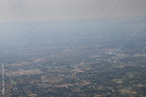 Aerial view of village of yelagiri from the mountain top, a top view, mountains covered with mist. Yelagiri hill station, nearest to Chennai