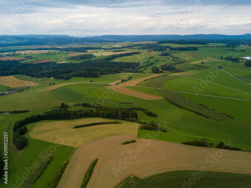 Aerial view on Witthoh tower with the long extinct volcanoes of the Hegau region near Lake Constance in Germany