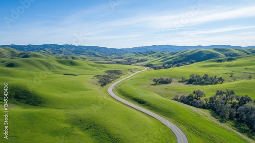 road, landscape, nature, green, hill, sky, travel, highway, scenery, aerial, view, winding, lush, vibrant, picturesque, blue, cloud, countryside, journey, destination, drive, adventure, exploration, freedom, summer, spring, outdoors, idylli, tranquil, peaceful, scenic, route, transportation, infrastructure, rolling, meadow, field, grass, tree, vegetation, environment, rural, horizon, perspective, sunlight, daytime, beauty, wanderlust, new