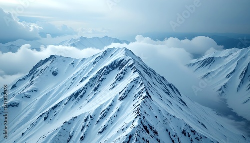 helicopter, aerial, mountain, alps, snow, snowfall, mist, atmosphere, cinematic, realism, landscape, scenery, glacier, winter, cloud, view, flight, peak, icy, rugged, wilderness, adventure, altitude, nature, horizon, sky, serenity, vista, cold
