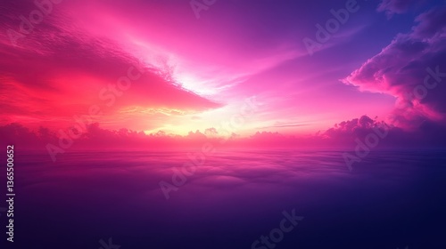 Aerial view vibrant sunset cloudscape, above clouds, peaceful scene, background for design