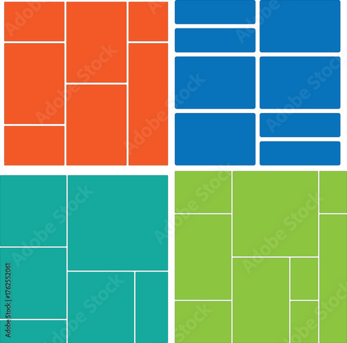 Aesthetic Bento Box Photo Collage Frame Collection. Trendy Bento UI Layout Collection – Modular Grid Composition. Modern Bento Grid Poster – Colorful Modular Layout Design