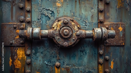 Aesthetic close-up of an aged metal surface featuring rust, decay, and intricate textures, offering ample blank space for textual overlays.