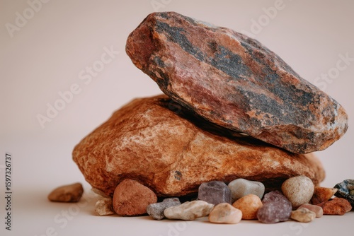 Aesthetic composition of textured natural stones creating a harmonious arrangement of balanced earthy colors while showcasing the beauty of organic elements in abstract settings