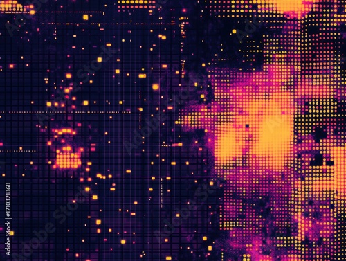 Aesthetic Pixelated Abstract Art with Purple and Yellow Hues