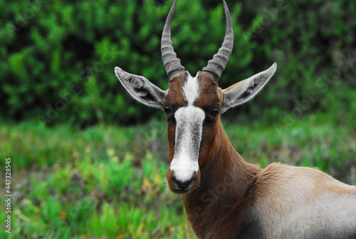 Africa- Extreme Close Up Portrait of a Wild White Faced Bontebok Antelope