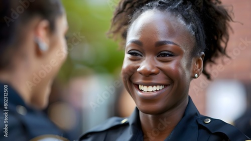 african, american, female, police, officer, engaging, conversation, colleague, law, enforcement, diversity, inclusion, teamwork, communication, community, service, duty, uniform, patrol, leadership, respect, professionalism, support, collaboration, dialogue, discussion, partnership, interaction, equality, empowerment, representation, solidarity, understanding, empathy, trust, camaraderie, in