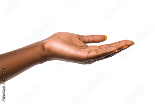 African American hand reaching out to something isolated on transparent white background