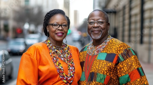 African american senior couple celebrating Juneteenth, african liberation day. Juneteenth Parade and Festival. on city street, Black History Month
