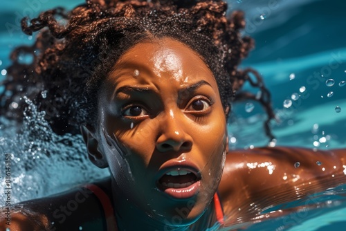 African American woman swimming in an outdoor pool, escaping the extreme heat