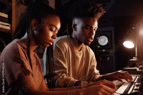 african american, couple, composing, music, piano, studio, creativity, art, culture, entertainment, instrument, key, melody, harmony, rythm, soulful, performance, recording, sound, production, black, diversity, talent, skill, passion, expression, teamwork, collaboration, inspiration, practice, dedication, professionalism, education, learning, teaching, coaching, motivation, progress, success, 2