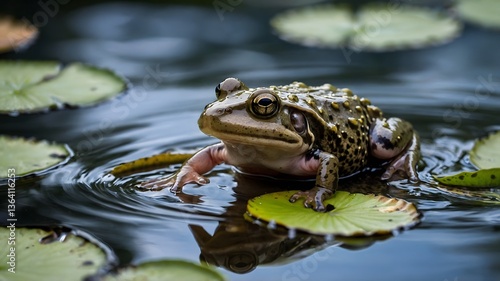 African Clawed Frog Leaping Between Lily Pads in a Serene Pond