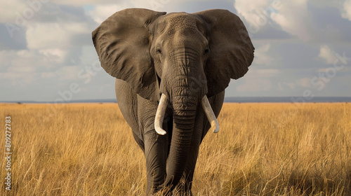 majestic, african elephant, roam, flora, background, african, elephant, savanna, grass-land, wildlife, tusk, trunk, herbivore, mammal, conservation, nature reserve, biodiversity, ecosystem, endangered species, standing, shrub, orange flower, interesting, grandeur, highlight, importance, animal, threatened