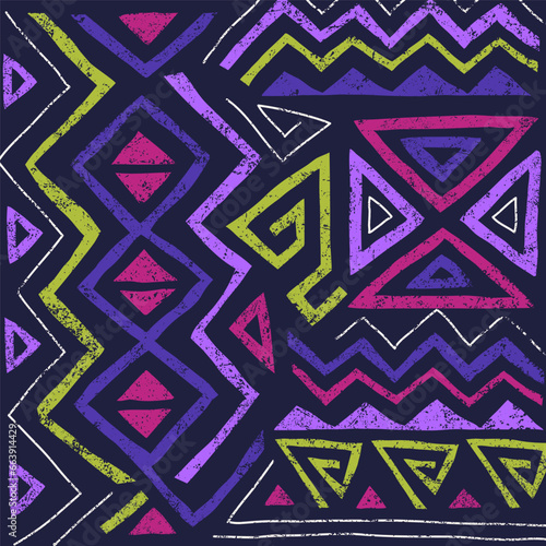 African ethnic seamless pattern in tribal style. Trendy abstract geometric background with grunge texture. Unique design elements for textile, banner, cover, wallpaper, wrapping