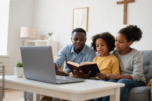 African family studying Bible together via online church platform