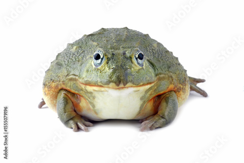 African giant bullfrog isolated on white bacground, front view giant frog (Pyxicephalus adspersus)