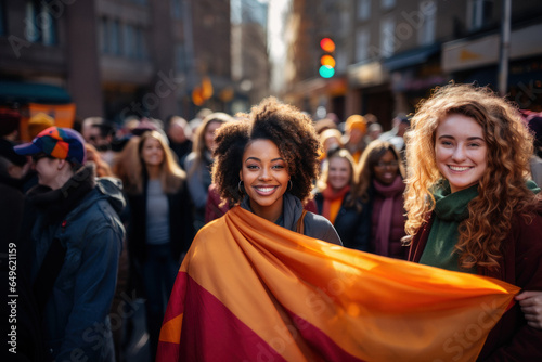 rainbow, flag, homosexual, girl, parade, pride, equality, demonstration, lesbian, diversity, sex, woman, bisexual, symbol, march, freedom, female, festival, happy, gay, discrimination, colourful, young, lifestyle, people, right, smile, fabric, textile, emotion, park, portrait, religion, respect, community, independent, adult, transgender, human, holding, protest, person, crowd, street, african, american, afro