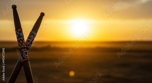 African Sunset Silhouette: Beaded Sticks at Golden Hour