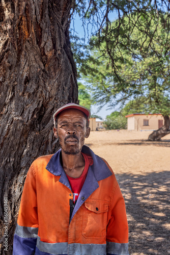 african, community, ethnicity, home, man, working, zambia, workwear, smile, poverty, male, person, people, confidence, looking, family, shadow, africa, south africa, lifestyle, man, shade, portrait, standing, one person, real people, adult, house, wearing, black, blue, mature, cheerful, outdoors, botswana, sunlight, green, background, professional occupation, tree, farmer, rural, acacia, culture, village, rural scene, old