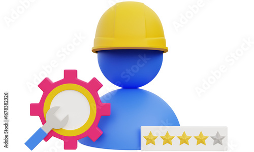 icon, score, star, gear, installation, serve, repair, person, helmet, three-dimensional, assistance, award, best, brainstorming, business, businessman, choice, client, cogwheel, communication, concept, connection, conversation, creative, creativity, design, development, education, evaluation, excellent, feedback, good, grade, growth, help, idea, interaction, learning, luxury, media, networking, office, online, planning, problem solving, service