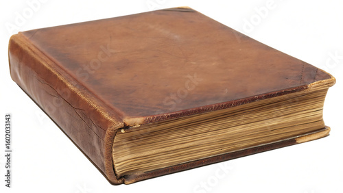 Aged leather bound book with aged pages isolated on a transparent background old book