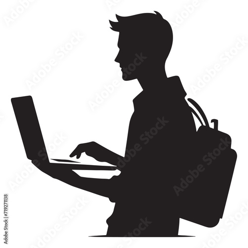 Agile Workforce Symbolism: Person Using Laptop Silhouette Expressing the Flexibility of Modern Workstyles - Person Using Laptop Illustration - Person Using Laptop Vector - Person Silhouette