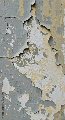Aging and peeling paint on an exterior wall. Large cracks and flaking paint emphasize neglect and the need for repairs. Ideal for insurance, construction, and maintenance content.