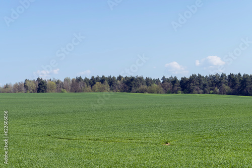 agricultural field with green wheat in the spring season