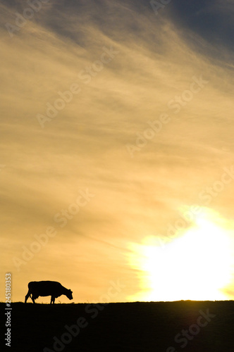 sunset, heaven, sun, cloud, landscape, sunrise, nature, orange, silhouette, evening, light, dusk, beauty, yellow, shaft, red, morning, blue, countryside, dawn, summer, colours, farming, animal, cattle, environment, bio, meat, beef