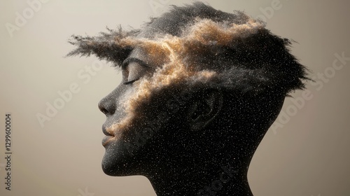 abstract art, face, woman, profile, nebula, cosmic, galaxy, star, space, thought, dream, imagination, mystery, surreal, digital artwork, artwork, artistic, creative, concept, visualisation, mind, consciousness, feeling, emotion, portrait, head