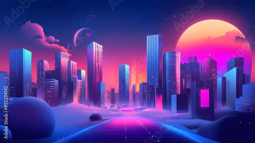 Ai city landscape generated illustrations. Futuristic City. Illustration