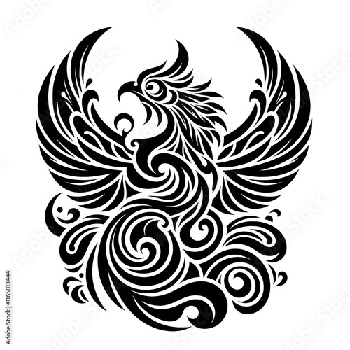 AI Generate of Phoenix Shape in Maori Art style isolated in white