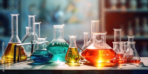 medicine, liquid, glassware, chemistry, laboratory, bottle, health, technician, technology, pharmacology, pharmaceutical, background, biotechnology, development, scientist, chemist, microbiology, discovery, container, fluid, tool, pharmacy, instrument, glasses, biology, beaker, laboratory, analysis, medicals, research, experiment, test, equipment, tube, chemical, science, flask, scientific, ai, photo, photo, realistic, illustration, photorealistic, shot, camera