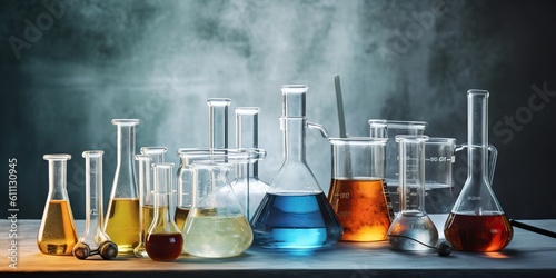 medicine, liquid, glassware, chemistry, laboratory, bottle, health, technician, technology, pharmacology, pharmaceutical, background, biotechnology, development, scientist, chemist, microbiology, discovery, container, fluid, tool, pharmacy, instrument, glasses, biology, beaker, laboratory, analysis, medicals, research, experiment, test, equipment, tube, chemical, science, flask, scientific, ai, photo, photo, realistic, illustration, photorealistic, shot, camera