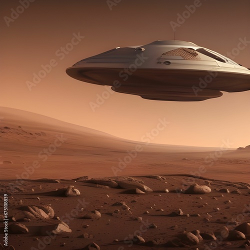 ai, generative, illustration, digital, art, flying saucer, flying, landing, desert, landscape, nobody, stone, science, mars, technology, space, fantasy, vehicle, alien, spaceship, gravity, invasion, abduction, mystery, object