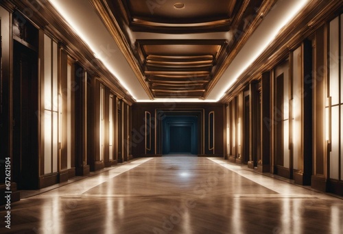 AI generated illustration of A long hallway with bright lighting in a modern building