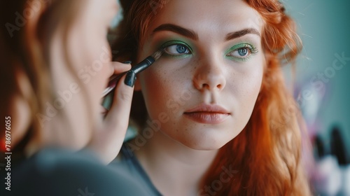 redhead, woman, make-up, beauty, cosmetic, eye, application, artist, professional, glam, fashion, style, female, model, face, attractive, elegant, stunning, lash, mascara, eyeshadow, makeover, glamourous, elegance, feminine, ai, generative, illustration, digital, art, pampering, blending, transformation, flawless, radiant, beautician, foundation, lipstick, brush, skilful, technique, expertise, enhancement, aesthetic, hairdresser, skincare