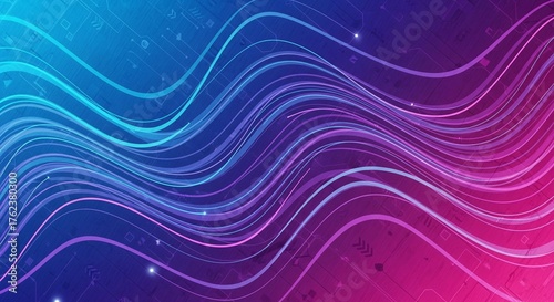 Ai generated:Abstract Cyan-to-Magenta Waveform Design with Grid Background and Glowing Accents