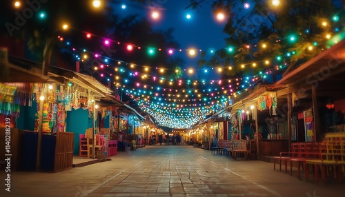 AI generator image of Clean the courtryard, lanterns,Lantern Festival, night market ,Flea markets, walking markets, night markets with lots of food and things to sell are popular with Thai people