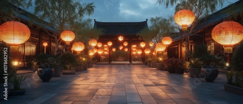 AI generator image of Clean the courtyard, lanterns,Lantern Festival, symbolizes the final day of Chinese New Year celebrations in Singapore and Malaysia, festive photography