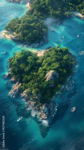AI generator image of houes ,island in the middle of the water, beautiful island in the middle of the sea, bird's eye view