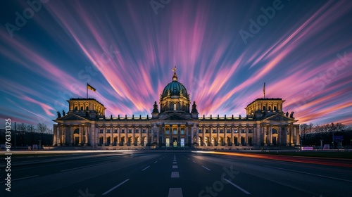AI generator image of Photo of Reichstag Building,historic building Germany at night