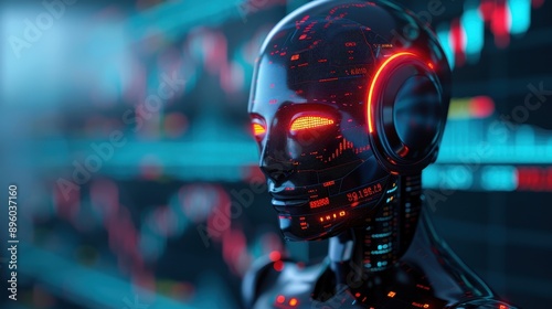 ai, robot, artificial intelligence, cyborg, android, futuristic, technology, digital, screen, display, datum, code, network, automation, innovation, future, science, cyber, modern, cyberspace, computer, research, engineering, development, progress, red light