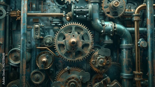 AI-generated steampunk scene with gears and vintage machinery, art design