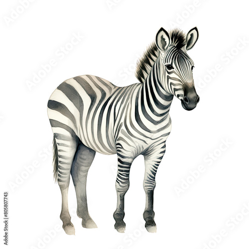 AI-Generated Watercolor cute Zebra standing Clip Art Illustration. Isolated elements on a white background.